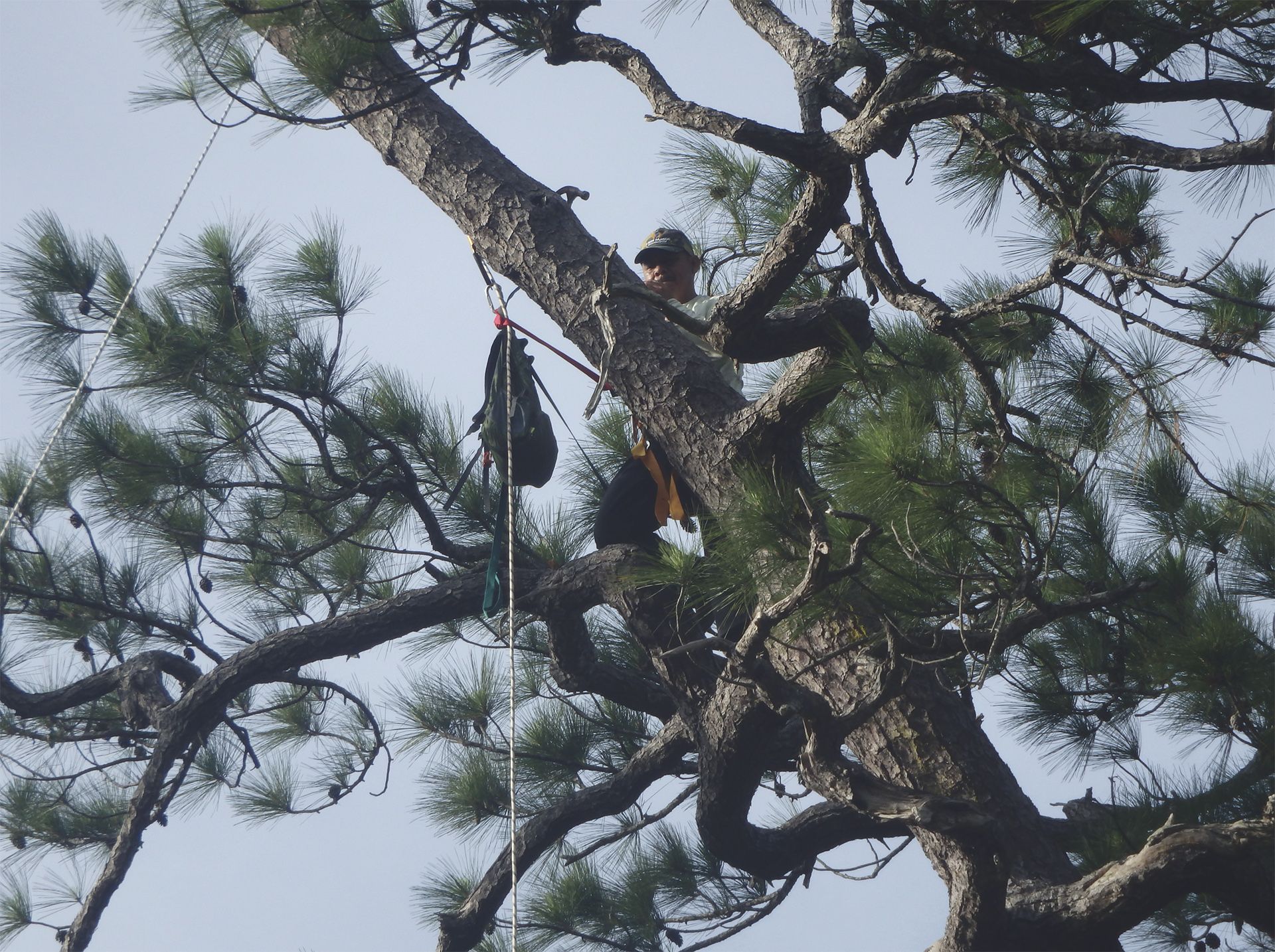Aujourd’hui, il n’existe malheureusement plus beaucoup d’espaces naturels où trouver les amazones à tête jaune (amazona oratrix). Ce perroquet était autrefois présent du Mexique au Honduras à travers une vaste aire de répartition mais désormais l’essentiel des individus sauvages ne se trouvent plus que dans la région de la péninsule du Yucatán. Le Belize en abrite surtout au sein d’un habitat très particulier : les pinèdes béliziennes. Plus semblables à des savanes qu’à des forêts, ces étendues planes, au sol principalement sableux, sont dominées par les pins des Caraïbes (Pinus caribaea). On y trouve également, surtout près des points d’eau, de nombreux paurotis de Wright (Acoelorrhaphe wrightii), une espèce de palmier, et d’autres buissons parsemés au milieu d’une mer de hautes herbes jaunies. Cet habitat unique fait partie de ceux que protège l’aire de gestion et de conservation de Rio Bravo, une sorte d’immense réserve privée administrée par l’organisme Programme For Belize. Ce sont eux qui ont autorisé Fabio Tarazona, étudiant à l’Université d’État du Nouveau-Mexique, à y étudier les amazones à tête jaune qui y vivent ; et c’est avec son équipe que je participe au travail de terrain sur place.