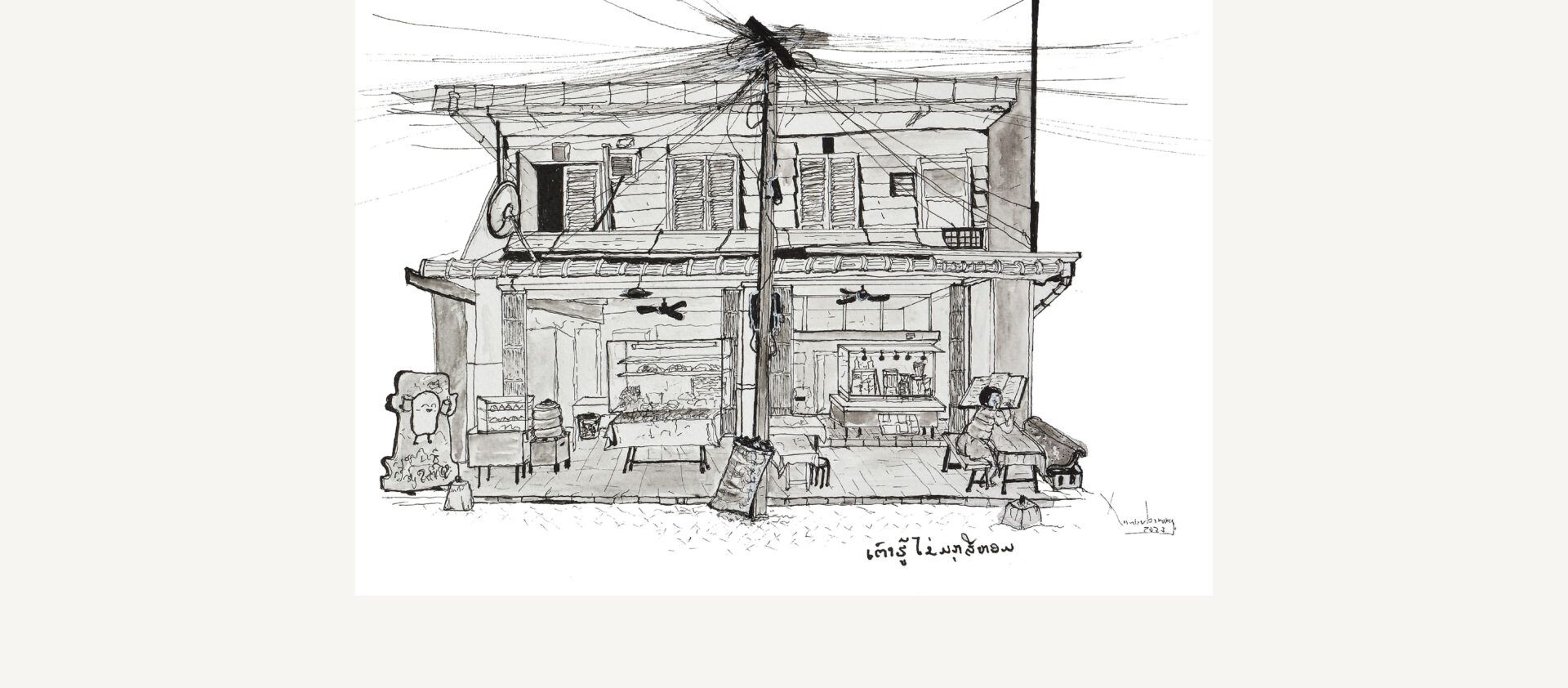 Un petit tuk-tuk customisé aux couleurs du propriétaire me conduit de l’aéroport à mon hôtel. Vieille moto à laquelle on a ajouté une sorte de petite carriole avec deux bancs en face à face et un toit pour protéger de la pluie, le tuk-tuk est pratique et économique. Je découvre la ville et son architecture. Comme dans beaucoup de pays d’Asie du Sud-Est chaque poteau électrique maintient un entrelacement invraisemblable de fils. Des pelotes de fils électriques inextricables semblent ainsi accrochées au ciel. Ce paysage urbain me laisse songeur et quelque peu perplexe. Les façades en béton ont toutes une forme particulière sans véritable homogénéité entre elles. Malgré tout, l’ensemble crée un alignement original constitué d’un mélange d’immeubles coloniaux, traditionnels et modernes. Construits sur trois ou quatre étages, les bâtiments offrent de nombreux balcons et toits-terrasses couverts qui préservent de la chaleur, la température ressentie avoisinant les 39° C. Dès 11 heures du matin, la ville tourne au ralenti attendant que la fraîcheur du soir s’installe à partir de 18 heures.