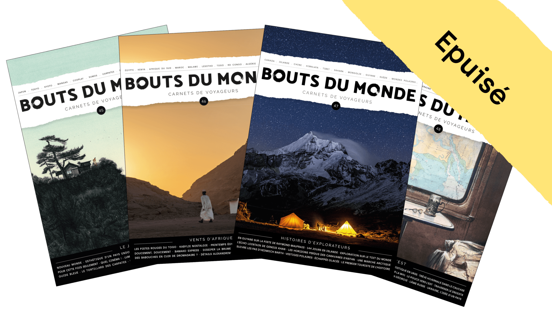 Bouts du monde n°45 sur le Japon est en rupture de stock. Vous pouvez commander les n°46, 47 et 48 dans la boutique. N'oubliez pas d'ajouter une 4è revue pour bénéficier de la remise de 15€ !