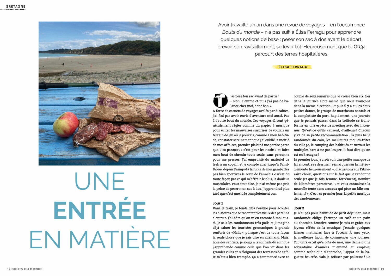 élisa Ferragu n’est pas allée si loin pour le vérifier. On lui a donné trois pommes et un saucisson qu’elle a glissés dans son sac à dos. C’est suffisant pour se mettre en route au pied levé sur le sentier des douaniers en Bretagne. Quatre jours. Une entrée en matière. Mais la prochaine fois, elle pèsera quand même son sac à dos avant de se mettre en route.