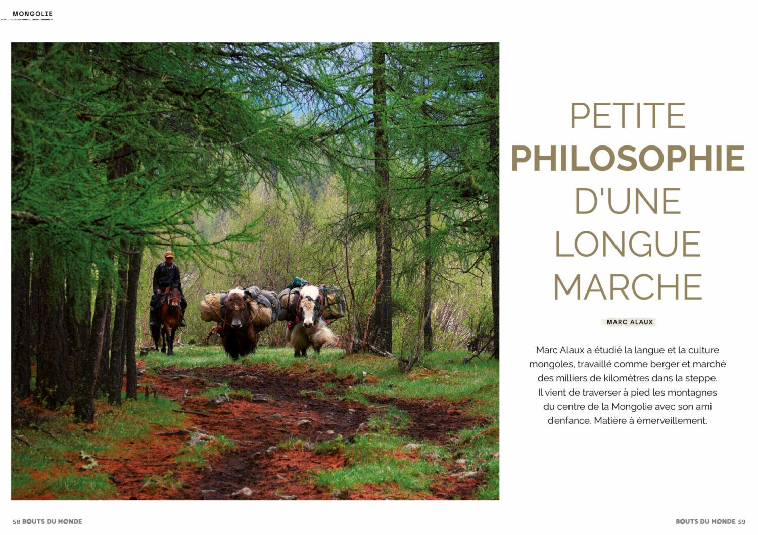 Pendant les trois mois qu’il a passé dans les steppes de Mongolie, Marc Alaux n’a pas vécu que « des aventures prodigieuses et des belles rencontres ». Il est arrivé au terme de son périple avec la gueule d’un évadé de goulag, mais heureux sûrement d’avoir cheminé longuement avec son ami d’enfance.